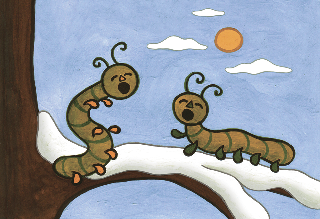 А всё как происходит… Очень просто. Обычно червячки и всякие разные гусенички спят в заблаговременно выкуськанных дырочках под корой деревьев, и ни за какие коврижки вам их не вытолкать в январе месяце на мороз. Вытолкать нельзя, но гусеничка сама выползает – посмотреть на погоду. Посмотрит, и от этого бесконечного снега такая тоска в её душе образуется, что гусеничка тут же начинает зевать – аж челюсти хрустят! И вот на этот треск слетаются птицы, потому что зимой пищи мало. Но червячки так заразительно зевают, что синица – на что уж птица сдержанная, – бывало, только приноровится слопать зевающую гусеничку – и тоже глаза вдруг выкатит, лапы растопырит, вытаращится вся, как всё равно филин какой, и судорожно, без всякого удовольствия зевнёт. А гусеничка, пользуясь моментом, нырнёт обратно в свой домик и, уже засыпая, ворчит, ругается… Ворчит о том, что зима. Что позёмка заплетает в косы седые пряди. О том, что пусто, что голо… Ворчит о том, что зима не кончается, хотя доподлинно известно, что у всего есть конец. И у моего рассказа тоже есть конец. И он здесь. Всё! Точка.