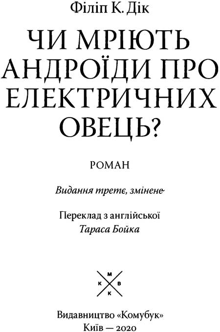 Тонкий промінь сріблястого світла рівномірно освітлював ліве око Рейчел Роузен, а до її лівої щоки прилип сітчастий диск. Вона здавалася спокійною. Усівшись так, щоб бачити показники обох індикаторів приладу Войґта-Кампфа, Рік Декард промовив: — Я змальовуватиму вам різні соціальні ситуації. А ви якнайшвидше казатимете про своє ставлення до кожної з них. Час, звісно ж, фіксується. — Отже, — відповіла Рейчел сухо, — мої усні відповіді до уваги не беруться. На показники ваших приладів впливатимуть лишень очні м’язи та капілярні розширення. Але я відповідатиму; хочу випробувати себе... — вона запнулася. — Починайте, містере Декард. Рік, вибравши запитання №3, заходився читати: — Вам подарували на день народження портмоне з телячої шкіри. Обидва індикатори враз проскочили зелений колір і сягнули червоного; сіпнулися далеко, але вмить повернулися назад. — Я не прийму такого подарунка,— сказала Рейчел. — Також заявлю на цю людину в поліцію. Зробивши помітку, Рік провадив тест далі, читаючи восьме запитання профільної шкали Войґта-Кампфа. — У вас маленький син і він показує вам свою колекцію метеликів, включно з баночкою для заморення. — Я відведу його до лікаря, — промовила Рейчел тихим, але твердим голосом. Знову підстрибнули обидві стрілки, але цього разу не так далеко. Він зробив чергову помітку. — Ви сидите й дивитеся телепрограму, — читав він, — і раптом помічаєте осу, що повзе по вашому зап’ясті. — Я вб’ю її, — сказала Рейчел. Цього разу стрілки майже не ворухнулись, хіба що ледь затремтіли. Він це також помітив, а тоді обережно вибрав наступне запитання. — У журналі ви натрапили на кольорове фото оголеної дівчини на всю сторінку, — він запнувся. — Ви проводите цей тест, щоб виявити, чи я андроїд, — запитала Рейчел, — а чи, може, для того, щоб перевірити мою схильність до гомосексуалізму? Стрілки не поворухнулися. Він вів далі: — Вашому чоловікові подобається це фото, — стрілки не фіксували реакції. — Дівчина лежить долілиць на великому чудовому килимку із ведмежої шкури, — стрілки не поворухнулися, а він подумав: «Реакція андроїда. Вона пропустила найголовніше в запитанні — шкуру мертвої тварини. Її мозок, себто мозок андроїда, зосереджений на інших подробицях». — Ваш чоловік чіпляє фото на стіні свого кабінету, — закінчив він, і тепер стрілки зарухалися. — Я не дозволю йому цього зробити,— сказала Рейчел. — Гаразд, — промовив він, кивнувши головою. — Тепер ось таке. Ви читаєте роман, написаний за довоєнних часів. Головні герої перебувають на Рибальській набережній у Сан-Франциско. Вони зголодніли і заходять у ресторан, що спеціалізується на приготуванні страв з морепродуктів. Один із них замовляє омарів, тож шеф-кухар кидає омарів у каструлю з окропом, а головні герої стоять поруч і спостерігають. — О боже, — вихопилося у Рейчел. — Який жах! Невже колись так робили? Яка жорстокість! В окропі живі омари? Однак індикатори не поворухнулися. Формально, її реакція була правильною. Але симульованою. — Ви винаймаєте в горах будинок, — провадив він, — у рекреаційній зоні. Грубі сукуваті соснові колоди, великий камін. — Так, — сказала Рейчел і нетерпляче кивнула головою. — На стіні хтось повісив старовинні мапи, гравюри Каррієра та Айвза, а над каміном голова оленя, дорослий самець з розгалуженими рогами. Люди навколо вас захоплюються 