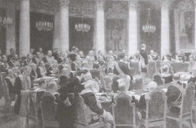 Торжественное заседание Государственного совета. Худ. И. Е. Репин, совместно с худ. Б. М. Кустодиевым и И. С. Куликовым. 1901–1903 гг.