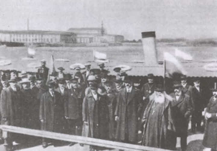 Император Николай II, адмирал Григорович и президент Франции Р. Пуанкаре на Петергофской военной пристани