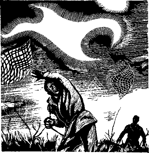 Все это, повторяю, я узнал много позже усть-хотимских событий; тогда же, когда мы со Славкой Угличем собрались в таежный маршрут, я и понятия не имел, что услышанное где-то краем уха сообщение о событиях в Англии будет иметь к нам самое непосредственное отношение. Целью нашего запланированного на следующее утро похода были обширные усть-хотимские топи. В этом районе зарегистрировали несколько случаев энцефалита, и я со Славкой, паразитологом биостанции, должны были заняться поисками бациллоносителей этой болезни — клещей. Захватив микроскопы, пробирки, банки и канистру со спиртом, мы выехали в деревню Потемки сначала на газике, потом на лошадях, а за Приозерьем уже никаких дорог не было. Отправив наше экспедиционное имущество за несколько десятков километров в объезд, мы зашагали по лесу, и, наконец, усталые, промокшие и голодные, добрались до Потемок, где и заночевали у Прохоровых, местных охотников-звероловов. Здесь я впервые услыхал об огневках. — Дальше-то куда? — спросил меня старший из Прохоровых, Семен. Я ответил. — У нас тут никто не болеет. Может, к северу, на лесоповале? — А в Усть-Хотимске? — Так нет же никакого Хотимска, — засмеялся Прохоров, — это болота так называются. — И на болотах есть сушь. — Есть-то есть. Даже близко. Там в кустарнике этих клещей тьма-тьмущая. Только… — он замялся. — Что «только»? По болоту не пройти? — Почему не пройти? Пройдем. У нас на это болотные плетенки есть. Лыжи вроде. Прохоровские. Испокон веков мастерим. Любую трясину пройдут — чем гуще, тем лучше. Только я не об этом. Об огневках. Не испугаетесь? Я не понял: — Какие огневки? Это же семейство бабочек-вредителей. — А если эта бабочка полтора метра в размахе? И горит, как уголь в печке. У Ваньки Мотовкина собаку сожгла. Три дня без просыпу пил. — Сообщили в район? — Да кто же Ваньке поверит? Самогонщик и враль. И собаку, верно, сам подстрелил. — А кто-нибудь еще видел? — Огневок-то? Идет слушок. Проверить бы, да брательники побаиваются. А одному на болоте не резон. — Так пойдем вместе, — обрадовался я. — У нас и ружье на двоих. — Ружей-то хватит, — задумался Прохоров, критически оглядывая наше снаряжение. — Только без груза пойдем. Налегке. Огневки там или не огневки, а на болоте сноровка нужна. На рассвете мы уже стояли на краю леса. Низкое-низкое небо, такое же темное, как окружавшие нас ели и лиственницы, нависало над плотным сизым туманом. Туман съедал и даль, и близь, и дегтярную воду у самого берега. За спиной у каждого кроме охотничьей двустволки болталась пара болотных лыж, коротких и широких. Но Прохоров, не надевая их, шагнул прямо в воду. Сапоги у него в отличие от наших, резиновых, были яловые, высокие, до бедра, и туго перетянуты сверху тоненьким ремешком. Да и брезентовая куртка Семена лучше защищала от дождя, чем наши городские «болоньи». — Шагайте смело, — сказал Прохоров, — глубоко не провалитесь, под ногами тропа. Мы шли по мелкой воде, ощущая под ногами скользкий горбыль и старались не отставать от шагавшего впереди Прохорова. Туман словно отползал перед нами, высветляя торчавшие из воды кочки с зеленой болотной травой или сизыми мшаниками. — Стоп, — сказал вдруг Прохоров через полчаса, — влазь на кочку и обувайся. Под обувкой он подразумевал лыжи, которые мы довольно сносно прикрепили к нашим хлебнувшим уже воды сапогам. — Тропа кончилась? 