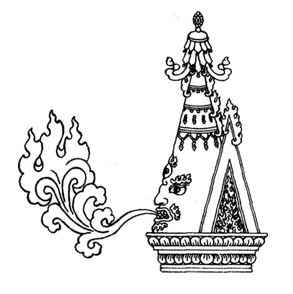 «Пламя также имеет форму треугольника, направленного вершиной вверх. Пламя превращает все вещи в пепел. Все двойственности, сгорая, становятся единой реальностью. Мы преподносим огню двойственность — материал наших жертвоприношений, — и огонь преображает её. На голове человека также расположен указывающий вверх треугольник. Это три глаза. Два нижних глаза видят двойственность, верхний глаз — только единство. Таким образом, логично заключить, что должным образом выполненное поклонение поможет тебе открыть твой третий глаз».