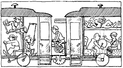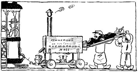В связи с предстоящей чисткой[146] аппарата и переквалификацией циркачей Андрэ Госфикус временно покидает пределы Северо-Западной области. Андрэ Васильевич, не дожидаясь чистки, в ударном порядке выезжает на пару гастролей в провинцию, после чего Андрюша Госфикус снова будет выступать в своем научно-культурном репертуаре. Привет, дорогой Андрюша! Добро пожаловать! Возвращайтесь! Пишите открытки с пути! Не простудитесь! Андрюша выезжает в провинцию со своей семьей.
