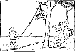 Сегодня предполагается оживленный вечер веселья и ловкости — наш неувядаемый маэстро Госфикус хотел пройти 6 метров по натянутому канату. Однако ряд учреждений и отдельных лиц отговорили заслуженного артиста Сев.-Зап. области от такого рискованного номера. Тем более что канат, надо полагать, может не выдержать энергичного напора человеческого тела, и сочный артист может погибнуть в полном расцвете сил и творчества. На рисунке — ряд учреждений и лиц отговаривают артиста. Вблизи — плачущая семья не велит ходить без предохранительной сетки. Андрюша не пойдет. Он еще нужен культуре и цивилизации.