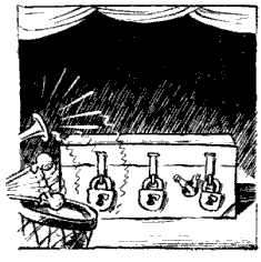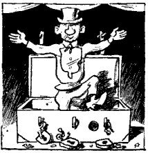 2. Вы имеете обыкновенный сундук из карельской березы. Никаких приспособлений в нем нету. При полном освещении, на глазах всей публики, Андрэ Госфикус ложится в этот сундук, произнося петушиные слова: «Сем, селебем, симбу, сембе. Мекеке, рекеке, собака». Смертельная бледность покрывает черты лица утомленного иллюзиониста. Алаверды к вам, дорогой Андрэ Госфикус!