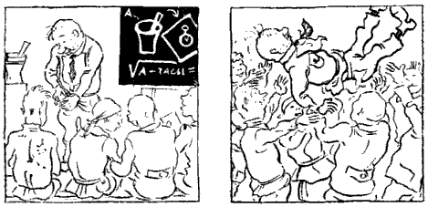 Бурные аплодисменты и крики «ура». Андрюша дает научное объяснение: кирпич взят обыкновенный, недавнего изготовления. От тряски он превратился в песок, а песок в свою очередь просыпался на арену через редкую материю кепочки, купленной у частника. А что на полу почти ничего незаметно — так это недавно пол ремонтировали — доски ссохлись, и песок ушел в щели. Аплодисменты. Крики: «Позор».