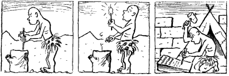 Изобретателям завсегда несладко жилось. Так например беспримерная волокита случилась в свое время с открытием огня. 1. Пещерный житель некто К. задумал изобрести чего-нибудь такое ценное, доступное пониманию своих современников.