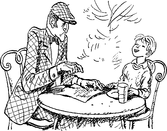 Когда наступило долгожданное воскресенье, Тим знал уже с самого утра, что после обеда пойдет на скачки. Не успели старинные часы в гостиной пробить три раза, как он потихоньку выскользнул за дверь, выковырял из щели в стене соседнего дома свою монету и со всех ног помчался на ипподром. У входа он с разбегу налетел на какого-то человека, и человек этот оказался не кем иным, как господином в клетчатом. — Оп-ля! — воскликнул господин в клетчатом. — Ты, я вижу, еле дождался! — Ой, извините, пожалуйста! — запыхавшись, пробормотал Тим. — Ничего, малыш! А я тебя тут как раз дожидаюсь. Вот получи-ка квитанцию. Пять марок не потерял? Тим отрицательно покачал головой и достал из кармана монету. — Молодец! Тогда иди к окошку. Если выиграешь, подожди меня потом здесь у входа. Я хочу с тобой кое о чем побеседовать. — Хорошо! Тим снова поставил на ту лошадь, имя которой написал в квитанции незнакомец, и, когда скачки кончились, оказалось, что он, как и в прошлое воскресенье, выиграл целую кучу денег. На этот раз он быстро отошел от кассы, никому не показав своего выигрыша. Ассигнации он засунул во внутренний карман куртки и, стараясь придать своему лицу выражение полного равнодушия, поспешно покинул ипподром через дырку в заборе. Ему не хотелось встречаться с господином в клетчатом: при виде этого человека ему всякий раз становилось как-то не по себе. И потом, ведь незнакомец сам подарил ему квитанцию и деньги. Значит, Тим ничего ему не должен. Сразу за ипподромом находился луг, и на нем росло несколько высоких дубов. Тим лег на траву под самым большим дубом и стал думать о том, что ему делать со своим богатством. Хорошо бы оно помогло ему подружиться со всеми — с мачехой, и с братом, и с учителем, и с товарищами по школе. А отцу он поставит мраморную плиту на могилу, и на ней будет надпись золотыми буквами: «От твоего сына Тима, который никогда тебя не забудет». Если останутся деньги, Тим купит себе самокат, как у сына булочника, — с гудком и надувными шинами. Он все грезил и грезил наяву, пока наконец не уснул. О господине в клетчатом Тим так больше ни разу и не вспомнил. Если бы он увидел его сейчас, то наверняка бы очень удивился: странный незнакомец беседовал с тремя жуликами, которые в прошлое воскресенье угощали Тима лимонадом. Но, к счастью или, вернее, к несчастью, Тим этого не видел. Он спал. Его разбудил резкий голос — голос господина в клетчатом. Он стоял здесь, под дубом, рядом с Тимом. Глядя на Тима в упор, он спросил не слишком приветливо: — Ну что, выспался? Тим кивнул, еще не совсем проснувшись, приподнялся и на всякий случай ощупал снаружи внутренний карман своей куртки. Карман показался ему странно пустым. Тим быстро сунул в него руку и вдруг окончательно проснулся: карман и в самом деле был пуст — деньги исчезли. Господин в клетчатом насмешливо прищурился. — А де-де-деньги у вас? — запинаясь, пробормотал Тим. — Ну нет, соня! Деньги у одного из троих мошенников, с которыми ты кутил в прошлое воскресенье. Он тебя выследил. Видно, такая уж у меня судьба: всегда я прихожу слишком поздно! Только он меня завидел, сразу пустился наутек. Так-то мне и удалось тебя обнаружить. — В какую сторону он побежал? Надо позвать полицию! — Не очень-то я уважаю этих голубчиков… — Незнакомец поморщился. — На мой вкус, они слишком плохо воспитаны. А жулик все равно уже успел удрать з