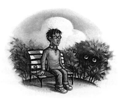 Гаррі ну ніяк не був схожий ні на кого з Дурслів. Дядько Вернон був такий огрядний, що, здається, навіть шиї не мав, зате його обличчя прикрашали пишні чорні вуса. Тітка Петунія була кощава й мала кобиляче обличчя; Дадлі був білявий, рожевощокий і тілистий. А от Гаррі був маленький і худорлявий, з блискучими зеленими очима і чорним чубом, що завжди стирчав навсібіч. Він носив круглі окуляри, а на чолі мав тонесенький шрам, схожий на блискавку.