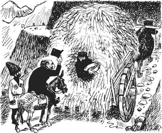 Неизвестно, какой разговор произошел между ним и старухой, так как он велся вполголоса и даже туземец не принял в нем никакого участия. Но, когда банкир Вестингауз поздно вечером выкатил из глаза монокль, чтоб зевнуть и хрустнуть, как следует, собственными костями, на дворе раздался стук копыт и оглушительный хохот князя Куркуреки. Вестингауз лениво поднял полог. По склону ехал мосье Надувальян, держа перед собой страшную черномазую ведьму, повязанную по самые ресницы. Он обращался с ней в высшей степени почтительно. Завидя банкира, он подмигнул ему левым глазом и крикнул: — Карошая тетенька! Займется хозяйством. Сам знаешь, без своего человека справиться невозможно.