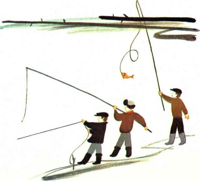 В тёмные осенние ночи дедушка брал мальчика с собой лучить. В носу лодки ярко и бойко горело смольё. Дедушка, широко расставив ноги и терпеливо вглядываясь в воду, стоял подле огня с наготовленной острогой, а он, сидя в корме, бесшумно правил веслом. Река устало и глухо сносила их вниз. В тяжёлом металлическом цвете воды слабо поблёскивал опавший лист. Лопались и меркли пузырьки. Где-нибудь посреди реки невесть с чего в спокойную погоду долго держалась на одном месте длинная полоса зыби, мерцающая непонятным волнением, которая затем так же неожиданно, как и появлялась, исчезала. Было сыро и зябко, огонь лишь дразнил недостающим теплом, но было и тревожно-сладостно, необыкновенно на душе от проплывающих в строгом молчании склонённых с берега кустов, от таинственных всплесков, возникающих то здесь, то там, от дальнего крика ночной птицы, от сказочной пляски огня, на который где-то мчится и никак не может остановиться ошалевшая от его сияния рыбина.