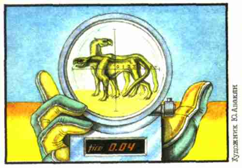 Вопреки всем законам механики лодка Пенькова при старающемся на полные обороты моторе двигалась кормой вперед. Ее хозяин беспомощно возился на сиденье, в беспамятстве пытаясь выгребать руками, но, завидев инспектора Дубняка, сник окончательно и даже как-то успокоился. — Глуши мотор, Пеньков, — сказал Дубняк. — Не помощник он тебе. — Это почему? — насторожился тот. — Тебя к берегу сеть твоя браконьерская, полная рыбы ценных пород, притягивает. Нынче рыба со всего озера к этому берегу собралась, вот и твой хищнический улов сюда спешит… Расталкивая неохотно сторонящихся сомов и суперщук, лодка с расхитителем народного добра двигалась к поджидавшему ее Дубняку. — Нынче я тебя поймал, — промолвил инспектор, — спасибо, товарищи помогли. — Студент, небось? — нехорошо оскалился Пеньков. — Земснаряд недоношенный… Ну, потолкую я с тобой как-нибудь! — И вы мне сразу не понравились, — покачал головой Тимофеев. — Ну что ж, заходите, потолкуем, всегда рады… Дед Мамонт с уважением поглядел на практиканта. — Давай на берег, Пеньков, — пригласил Дубняк. Браконьер усмехнулся. — Нашел дурака, — сказал он. — Сейчас вот сеть отстригу, только ты меня и видел. — Посмотрите! — вдруг закричал Тимофеев. — Вон там! За самой лодкой Пенькова с утробным звуком вздулся гигантский водяной пузырь. Бесшумно, словно перископ подводной лодки, в пятне взбаламученного черного ила над озером вознеслась на морщинистой жирафьей шее лоснящаяся морда допотопного ящера. С хрустом раскрылась огромная, никак не меньше самой лодки, пасть, густо утыканная кинжальными клыками цвета слоновой кости. — Спасите! — дурным голосом заорал Пеньков, мигом утратив прежнюю свою вальяжность, так затронувшую одинокое сердце Стихии Вяткиной, и выпал из лодки. Бултыхая сапожищами, он вылетел на берег и проворно спрятался за Тимофеевым. — Кто это? — восторженно спросил Тимофеев. — Водяной наш озерный, — шепотом пояснил дед. — Давно не просыпался, — да, видно, ты его раздразнил… — Несси, — как всегда коротко заметил Дубняк, на всякий случай отодвигая всех широкими ладонями подальше от воды. — За рыбой пришел. — А на людей не перекинется? — опасливо осведомился Пеньков, которого при одной мысли о том, что еще недавно он бороздил озерную гладь на своей утлой лодчонке, прошиб холодный пот. — Не должен бы, — произнес Дубняк, с сомнением покосился на лязгающего зубами браконьера и прибавил: — Так то ж на людей… Впрочем, кто его породу знает! Может, у него с голодухи нрав испортился. — Да еще спросонья, — сочувственно заметил Тимофеев. По возможности неторопливо, стараясь не уронить собственного достоинства, все двинулись прочь от страшного места. Не пройдя и десятка шагов, Тимофеев вдруг вспомнил, что на берегу остался его прибор вместе с бесценным вещмешком. Поколебавшись, он вернулся. Ящер тупо мотал тяжелой башкой и плескал многометровым хвостом, с которого свисала темно-зеленая тина. Завидев Тимофеева, он замер и уставился на него тусклыми голодными глазами размером с суповую тарелку каждый. — Но-но, — сказал ему Тимофеев. — Не вздумай! — Ффф, — грустно сказал ящер и попятился. — То-то же, — промолвил Тимофеев. — Ну, будь здоров. Он подобрал мешок, сунул туда прибор и быстро зашагал к лагерю археологов, половина которых еще и не думала подниматься а другая половина маялась бездельем, кур