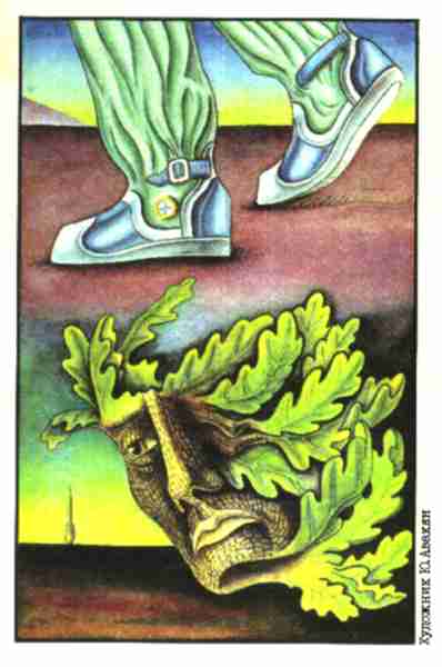 Добраться до леса оказалось не просто. Был разгар того времени, которое на Земле называется летом, а здесь Гуров окрестил эту пору «паршивой жарой». Обливаясь потом, Гуров и Лапушкин уже больше трех часов месили ногами фиолетовый песок, а лес по-прежнему оставался далеким. Гуров уже начал было опасаться, что он не более чем мираж, когда песок вдруг кончился и начался бурый кочкарник, по которому идти оказалось легче. А там и лес ощутимо приблизился, нагрянул, надвинулся — и расступился. Лимоннолиственные деревья давали узорчатую тень. Разогретые солнцем стволы обильно сочились горько пахнущей смолой. Деревья кругом были одной породы, и все оказались усыпанными ананасиками, так что зря, выходит, Гуров и Лапушкин запаслись ими. Можно набрать этой вегетарианской пищи и через некоторое время все же вернуться к «Волопасу». Ракета, конечно, безнадежно повреждена, но вдруг еще цел радиомаяк, можно вытащить катер-разведчик и облететь планету в поисках местной цивилизации. Вдруг да повезет?! Вдруг да отыщутся какие-нибудь завалященькие собратья по разуму, а то и не совсем завалященькие: с развитой цивилизацией и готовыми к употреблению космическими кораблями… Только бы вернуться на Землю! Космос, который в течение всех пяти лет работы в нем Гурова казался ему полным неисчерпаемых тайн, вдруг сделался тошнотворно-однообразным, сконцентрировавшись в этих бурых травах и лимонно-желтых листьях. Тайны космоса и его безграничность, оказывается, имели смысл лишь постольку, поскольку в этом космосе, на своем более или менее определенном месте, поскрипывала вокруг собственной оси старушка Земля и всегда оставалась перспектива возвращения на нее. Без этого и космос оказался ненужным Гурову. Гуров очнулся от дум, поднял голову. Перед ним лежала небольшая полянка. Он помедлил и шагнул на нее. Гуров сейчас был рад, что Лапушкин отстал и бредет поодаль, задумчиво касаясь стволов, липких от смолы. Может быть, в этой тишине таится опасность? Но все вокруг дышало покоем. Трава доходила до щиколоток и никакой угрозы, кажется, не представляла. Гуров наклонился, чтобы поближе рассмотреть цветок с прозрачными, трепещущими зеленоватыми лепестками, и в это время… — Берегись! Он уже настолько привык, вернее, приучил себя к тому, что человеческий голос не может, не должен звучать здесь, что слух не сразу воспринял крик Лапушкина, мозг не сразу понял, что означает этот крик. Но тренированное, постоянно готовое к опасности тело отреагировало точно и быстро. Гуров прыгнул вперед, перевернулся в воздухе, мгновенно осмотрев окрестности. Никаких неведомых чудовищ он не увидел. Трава на поляне по-прежнему мягко колыхалась. Но Гуров, падая в эту траву, успел поймать взглядом, как медленно и бесшумно тает между деревьями силуэт Лапушкина, и долго, долго, казалось, плавал в мареве его печальный взгляд.