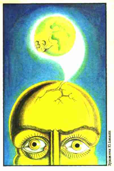 Сознание возвращалось медленно. Первое, что он ощутил, — боль от множества ушибов по всему телу и противный ком в желудке. Он попробовал вытянуть ноги. Ноги ни во что не уперлись, и он понял: у тела нет опоры. Значит, я умер? Свободно плаваю в пространстве? Он открыл глаза и убедился, что и вправду плавает. Прямо перед глазами какой-то потолок — или это пол? Он поморгал, и окружающие предметы, задрожав, обрели четкие очертания. Через некоторое время стало ясно, что это — космический корабль. В каюте разгром. Кругом плавают какие-то ящики и самые разнообразные предметы, видно сорванные с креплений перегрузкой. По полу носит обрывки пережженных проводов. Шкафы у стены оплавлены. Что все это значит? Он поднял руку, оттолкнулся от потолка, поплыл вниз и, изловчившись, ухватился за поручни у стены. Вцепившись в них, он попытался подумать. — Все это имеет простое и логичное объяснение, — произнес он вслух, чтобы услышать собственный голос. — Сейчас я вспомню. Как его зовут? Он не знает. — Эй! — крикнул он. — Есть здесь кто-нибудь? Эхо прокатилось в тесном корабле. Ответа не было. Тогда он поплыл по каюте, увертываясь от летающих вокруг ящиков. Через полчаса стало ясно, что на корабле больше никого нет. Он вернулся в рубку. Там было мягкое кресло, а перед ним длинная панель управления. Пристегнувшись к креслу, он занялся изучением панели. Она состояла из двух пустых экранов, одного большого и другого поменьше. Под большим экраном две кнопки с надписями: «Носовой обзор» и «Кормовой обзор». Под кнопками шкала настройки. Под маленьким экраном надписей нет. Других приборов он не нашел и нажал кнопку носового обзора. Туман на экране рассеялся и открыл черное полотно космоса в блестках звезд. Он долго смотрел на экран в полном недоумении, потом отвернулся. Прежде всего надо не паниковать и собраться с мыслями. Он не помнит, как оказался здесь, не знает зачем. Но хоть что-то он знает? — Я человек, — громко сказал он. — Я нахожусь в космическом корабле, в пространстве. Я знаю, что такое звезды и что такое планеты. Что еще? Кое-что из астрономии, еще кое-что — из физики и химии. Вроде бы ему знакома английская литература, хотя в голову лезут только бестселлеры какого-то Тродзела. Еще он помнит авторов нескольких книг по истории, но вот что написано в этих книгах? Зато он знает, как называется то, что с ним стряслось: амнезия. Вдруг страшно захотелось взглянуть на свое лицо. Ну конечно! Раньше надо было догадаться! В самом деле, нельзя же не узнать самого себя. А увидев свое лицо, он все вспомнит. Он перебрался к другой стене каюты и начал искать зеркало. Там было множество встроенных шкафов, и он торопливо открывал их один за другим, вытряхивая содержимое прямо в невесомость. В третьем по счету нашелся бритвенный прибор и стальное зеркальце. Он жадно вгляделся в свое отражение. Длинное, совершенно белое лицо с неправильными чертами. На подбородке пробивается черная щетина. Бескровные губы. Лицо незнакомца. Этого он не ожидал, но все же взял себя в руки и начал планомерный осмотр каюты. Ну хоть что-нибудь здесь подскажет ему, кто он такой? Он один за другим вскрыл все ящики, каждый раз убеждаясь, что в них только вода и пища. Отпихнув ящики подальше, он продолжал поиски. В углу плавал обгоревший по краям листок бумаги. Он схватил его и прочел: «Дорогой Рэн! Ребята из Биохимии не