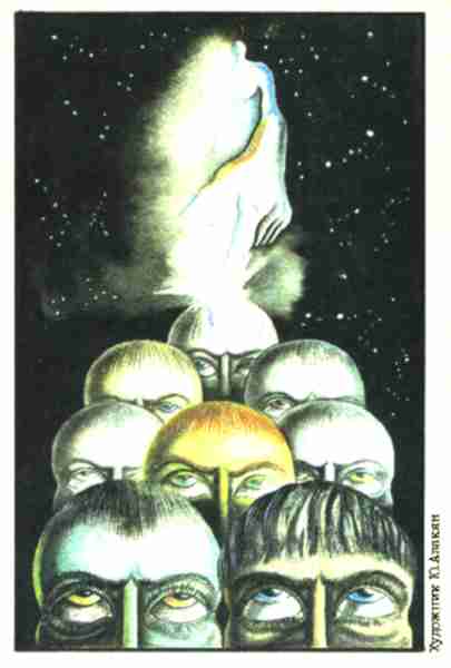 Все эти ночи и дни он только и размышлял над загадкой гибели друзей. Чтобы проверить одно свое предположение, он вынул из бокового кармана куртки коробочку кают-диктофона, положил на песок, отошел на двенадцать шагов и задействовал звук. Собственный голос показался ему отвратительно-слащавым, однако ничего такого не произошло. Значит, здешние гарпии предпочитают живую добычу. Однако же существует, черт побери, какая-то разгадка! И он начал по привычке перебирать в уме первые попавшиеся слова, надеясь зацепиться за любое звено в той цепи, что вызволит его из беды. Этой игрой с самим собой он прозанимался два дня, пока наконец после слов «фонарь» и «метеор» не всплыло в памяти — «Афанеор». Афанеор, дочь Ахархеллена. Вождя туарегов из рассказа знаменитого Ивана Ефремова. Постой, постой, не в этом ли превосходном рассказе шла речь о предании туарегов, что в некоторых местах Сахары обитают духи молчания. Точнее, духи встревоженного молчания — джаддиасы? Или это у Гаудио в «Цивилизациях Сахары»? Или в путевых записках Елисеева из «Живой старины», помнится, сам Ефремов описал в рассказе этого замечательного путешественника далекого прошлого, туареги величали его Эль-Иссей-Эф. Как бы то ни было, джаддиасы перелетели, видимо, сюда. В Сахаре, как и здесь, их можно было задобрить лишь молчанием: скажешь слово — и тебя втягивает воронка песка… Гуров не мог идти. Кровавые волны застилали глаза. Больше всего ему хотелось выругаться, страшно выругаться, проклясть Лапушкина, который совершил такое страшное предательство, бросил его одного — одного в целом свете! Он уже открыл было рот… и промолчал. Затем повернулся и пошел прочь, не разбирая дороги. Потом еще много, много дней он провел, физически ощущая необходимость молчания, как, наверно, тонущий ощущает камень, привязанный к шее. Даже во сне преследовало Гурова это чувство. Ему снились люди. Их было много. Они куда-то уходили, Гуров видел их сзади. Развевались женские платья, летели по ветру волосы. Мужчины двигались неторопливо, поводя широкими плечами. Гуров узнавал среди них Аверьянова, Лапушкина… Рядом с ними бежали дети, мелькая загорелыми ножками. Гуров слышал удаляющийся шум голосов и бросался вслед за людьми. Нет, его не мучила бесплодная, бесконечная погоня — кошмар многих сновидений. Шаги его были быстрее и даже легче, чем наяву. И он нагонял людей. Молча хватал их за руки, за плечи, рывком поворачивал к себе одного, другого… И отшатывался — у людей не было лиц. Плоский белый туман струился на их месте. Безглазый, безликий, молчаливый туман! Люди отворачивались, как ни в чем не бывало продолжали свой путь, маня реальностью очертаний тел. Гуров смотрел им вслед, корчась от горя. Он мог бы вернуть лица людям, вернуть людей себе, если бы крикнул, позвал! Но и во сне он не мог решиться на это. А потом он все-таки вернулся к кораблю.