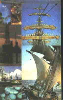 Коробки с бисквитами, консервные банки, многочисленные бутылки в оплетках представляли собой беспорядочное нагромождение в одном углу кладовой, все содержимое ящиков смешалось. Вильям Андерсон и я бросились отбирать то, что нам могло понадобиться, а Сэму велели пробраться в какую-нибудь из кают, находившихся по четыре с каждой стороны рубки, и принести несколько одеял и простыней, из которых мы могли бы соорудить себе навес, так как днем в лодке было жарко, а ночью холодно. Собрав все, что считали нужным, Андерсон и я пробрались к себе в каюты, чтобы забрать все, что хотели спасти. Сборы были в самом разгаре, когда Сэм, который находился в дверях рубки, громко сообщил, что начинается дождь. Сначала я хотел крикнуть ему: «Захлопни дверь в рубку, чтобы вода не попала внутрь!» Но потом передумал и чуть не расхохотался над такой нелепостью. Над входом в рубку была небольшая надстройка, с одного края которой имелась дверь. В том положении, в котором сейчас находилось судно, надстройка была прямо над входом в рубку, так что дождь никак не мог проникнуть внутрь. Вскоре мы услышали, как дождь вовсю забарабанил по корме. Мы взобрались на трап и выглянули наружу. Вокруг была густая пелена дождя, какую можно увидеть только в тропических широтах. — Как здорово, что мы здесь, — заметил Андерсон. — В шлюпке мы бы давно потонули в такой ливень. Я с ним полностью согласился, и мы решили переждать внутри парохода, пока кончится дождь. Это произошло только спустя четыре часа. Когда мы выглянули наружу, то увидели, что наша шлюпка почти до краев полна воды и осела настолько, что, если бы кто-нибудь из нас попробовал влезть в нее, она незамедлительно пошла бы ко дну. — Вот дела так дела, — сказал Андерсон и добавил: — Ничего не остается делать, как сидеть, где сидим. Я подозреваю, что в душе он был чрезвычайно рад этому обстоятельству. Можно понять человека, который провел в лодке безвылазно два дня и две ночи. По крайней мере спорить на эту тему было бесполезно, и мы принялись устраиваться в своем убежище. Мы притащили из каюты несколько матрасов и подушек и, когда стало совсем темно, зажгли лампу, предварительно наполнив ее прованским маслом, не найдя в кладовой ничего более подходящего. Ночью мы отлично выспались, ничто не потревожило нашего сна, если не считать того, что, переворачиваясь на другой бок, Вильям Андерсон каждый раз поднимал голову и пускался в рассуждения о том, насколько здесь лучше, чем в этой «проклятой посудине». Встав на следующее утро, мы отменно позавтракали, даже приготовили чай с помощью спиртовой горелки, используя вместо спирта бренди. После завтрака мы с Андерсоном решили отправиться в капитанскую каюту в кормовой части, которая теперь находилась довольно высоко. Надо было посмотреть, нельзя ли чего-нибудь спасти, когда подойдет какое-нибудь судно и выручит нас. Однако мы лазали не так блестяще, как Сэм, и оказались в затруднительном положении. Сэм сообщил, что где-то в первом отсеке за переборкой он видел лестницу, и, так как мальчишка сгорал от желания попасть в капитанскую каюту, мы милостиво позволили ему сходить и принести ее. Под нами в переборке была задвижная дверь, и мы отодвинули ее настолько, чтобы Сэм мог беспрепятственно спуститься вниз. Словно обезьяна, он ловко пролез в следующий отсек. Это было не особенно трудно, хотя ни