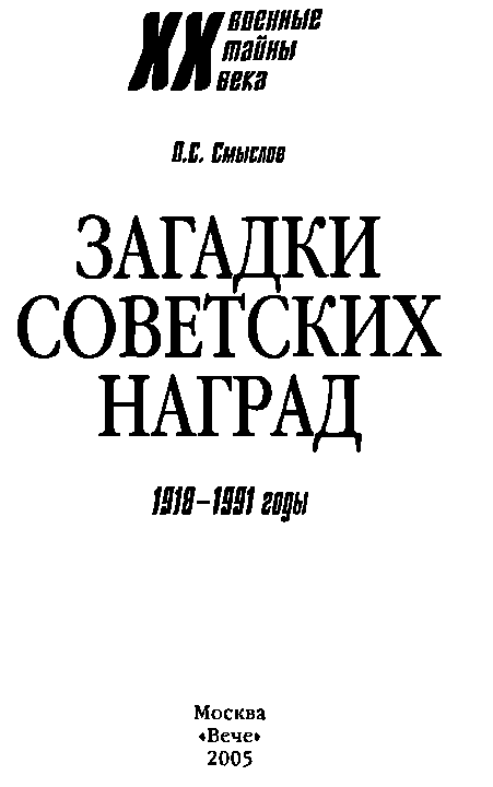 Смыслов Олег Сергеевич Загадки советских наград 1918-1991