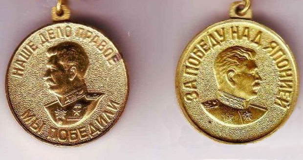 На медали «За победу над Германией» профиль Сталина обращен на запад, а на медали «За победу над Японией» — на восток.