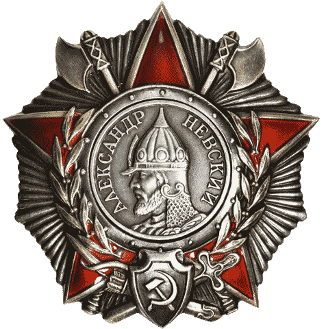 Орден Александра Невского. В описании сказано: «В центре ордена изображен актер Николай Черкасов в роли Александра Невского из одноименного кинофильма».