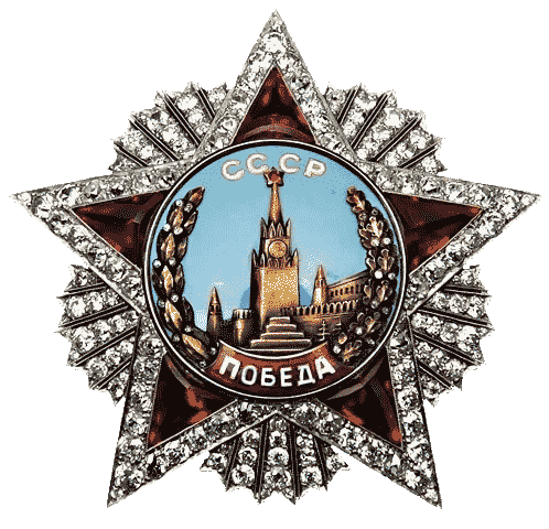 В день начала Курской битвы один из офицеров штаба тыла Красной Армии полковник Н.С. Неелов показал начальнику Техкома Агинскому эскиз ордена «За Верность Родине». На рисунке была изображена золотая звезда, под ней другая, красной эмали (рубиновой), развернутой так, что ее лучи тянулись между лучами первой, создавая десятилучевую красочную композицию. В центре находился медальон с барельефами Ленина и Сталина. Орден предполагался как высшая награда для командующих фронтами. После доклада Агинского Хрулеву состоялось совещание, на которое прибыли сам автор эскиза и главный художник Техкома А.И. Кузнецов. Эскиз полковника в общем понравился, однако были и замечания. В результате Кузнецову поручили разработать еще несколько эскизов ордена соответствующей композиции, с тем же названием. Всего за два дня художник нарисовал несколько новых эскизов с включением в композицию драгоценных камней. 30 августа Хрулев показал эти рисунки Сталину и получил его согласие на разработку нового ордена. Вот только изображение двух вождей в центре Сталин приказал убрать, а название изменить на орден «Победа». И еще он распорядился предусмотреть украшение драгоценными камнями. — Что у нас, воюют только генералы? — неожиданно задал вопрос Сталин и, не дожидаясь ответа, продолжил: — Воюют солдаты, а мы награждаем одних генералов. Это неправильно. Нужно подумать над наградой для солдат. Называться она будет, предположим, именем Героя Отечественной войны 1812 года Багратиона. Лишь после нее мы рассмотрим проект награды для генералов. Так согласно решению Наркомата обороны была утверждена группа по созданию солдатской награды. В нее вошли: художник Н. Москалев, архитекторы Военпроекта И. Телятников и Б. Бархин, художник-график Ф. Малиновский и другие. За один месяц они изготовили 26 эскизов, проявив достаточно смелую фантазию. После обсуждения 8 октября всех рисунков ордена Багратиона для показа Сталину Хрулев отобрал всего четыре. Иосиф Виссарионович выделил только проект Москалева. — Мы говорили и об ордене «Победа», — сказал Сталин, подводя итог обсуждению. — Ну, а победа не может быть без славы… Так и назвали этот орден — «Слава». 14 октября Хрулев предоставил Сталину новые рисунки с учетом замечаний. — Это не годится, — показал вождь на свой барельеф, — убрать У нас есть Спасская башня. Это символ и Москвы и всей страны. Вот ее и надо поместить. Кроме того, Сталин предложил поместить надпись «Слава» на красноэмалевой ленточке и установить всего три степени. Одновременно дал указание возобновить работу над орденом «Победа». И художник Кузнецов продолжил разработку проекта полководческой награды. Дважды в октябре Хрулев рассматривал его проектные рисунки и, наконец, один из них все-таки одобрил. 19 октября Сталину показали образец. Вместо Ленина и Сталина он предложил поместить в центре круга либо герб СССР, либо Спасскую башню с фрагментом Кремлевской стены. 23 октября из семи эскизов вождь отобрал один — пятнадцатый вариант с надписью «Победа» При этом он пожелал увеличить в размерах башню и стены и наложить их на голубом фоне, а штралы между лучами пятиконечной звезды уменьшить. Доработанный Кузнецовым эскиз передали ювелирно-часовой фабрике. Руководство фабрики получило задание в кратчайший срок изготовить пробный экземпляр ордена из пла
