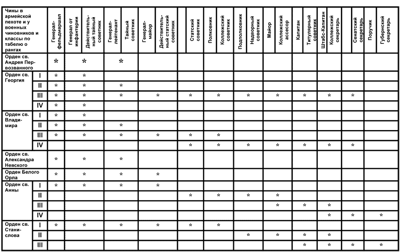 Соответствие орденов (дореволюционной России) и их степеней классам по табелю о рангах. (Профессор Чобит В. А.)