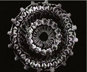 Одной из тех, кому принадлежит ведущая роль в этом научной прорыве, была тридцатилетняя англичанка Розалинда Франклин, биохимик и рентгенограф. Какое-то время она занималась исследованиями угля и углеродных материалов, но затем ее переориентировали на дифракционный анализ ДНК. В течение длительного времени Франклин получала рентгенографические снимки молекулы ДНК в разных ракурсах. Здесь представлен один из них, вошедший в историю науки под именем «фотография 51». На взгляд профана, это больше всего напоминает снимок вертящегося волчка, но вот как реагировал на него в 1953 году американский генетик Джеймс Уотсон, работавший в то время в кембриджской лаборатории: «Как только я увидел рентгенограмму, у меня открылся рот и бешено забилось сердце». Дело в том, что биохимики никак не могли прийти к согласию относительно того, сколько нитей, или цепей, содержится в структуре ДНК, хотя само вещество было выделено еще в 1869 году швейцарским химиком Фридрихом Мишером, давшим ему название «нуклеин». Рентгенограмма Франклин служила наглядным доказательством, что цепей две и они закручены одна вокруг другой в виде двойной спирали. Отсюда сходство этого изображения с фотографией винтовой лестницы, если смотреть на нее сверху. Итак, визуальное наблюдение помогло разрешить одну из загадок ДНК. Но что представляли собой, если продолжить метафору, «ступеньки» этой винтовой лестницы? И каким образом разные строительные блоки – сахара и фосфаты – складываются в целое? Во время стажировки в Кембридже Уотсон работал на пару с тридцатипятилетним английским ученым, бывшим физиком, Фрэнсисом Криком; вместе они, словно два архитектора, попытались создать модель ДНК – визуализировать ее структуру.