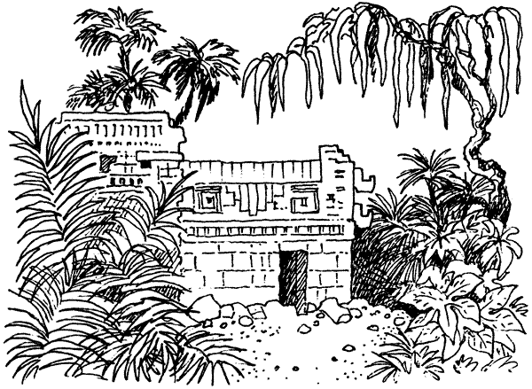 Я вижу себя перенесенным на запад континента. Растительность здесь густая, можно сказать, роскошная, население много культурнее, чем на востоке. Страна более гориста; искусно построенные храмы частью высечены в скалах, их выступающие фасады покоятся на колоннах, украшенных красивой резьбой. Вереницы людей, похожих на священнослужителей, входят и выходят из храмов; на их первосвященнике, или вожде, надета нагрудная пластина, такая же, как и на фигурке, которую я держу в руке. Внутри храмов темно, над алтарем видно изображение большого глаза. Жрецы совершают обряды заклинания перед глазом, причем весь ритуал носит оккультный характер, связанный с системой жертвоприношений, хотя я не вижу жертв — животных или людей.