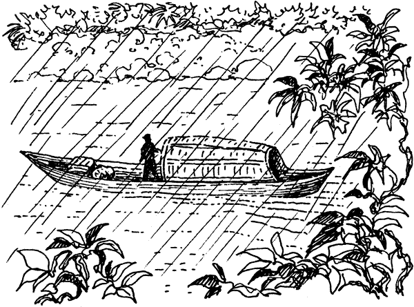 От Жакаранды до Канавиейрас мы ехали в большой лодке с шалашом из веток в качестве каюты. Фелипе и три бразильца забились в эту каюту, и там было так душно, что я предпочел просидеть на крыше весь путь, несмотря на проливной дождь, раскаты грома, мокрую одежду и собачий холод.