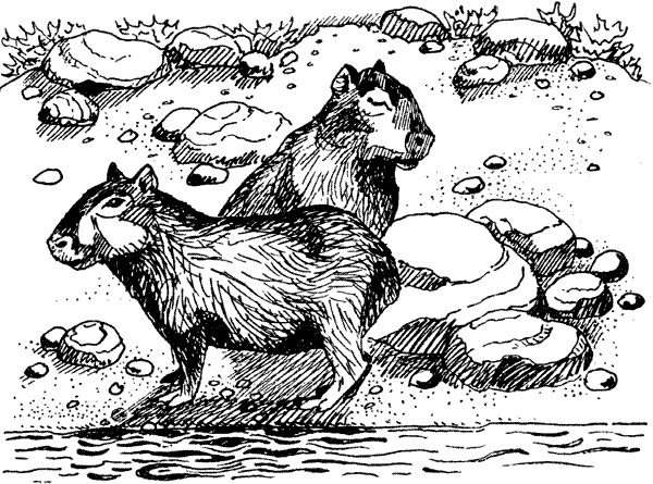 Невелика радость — рассматривать берег; с тех пор как мы покинули Корумбу, он ничуть не изменился: все те же перепутанные заросли ползучего вьюнка да бананообразные листья дикого щавеля; у самой кромки воды видны норы онса-ягуаров, растительность вокруг вытоптана. Позади возвышаются, подобно башням, толстые деревья самых различных пород, они занимают полосу ярдов в двадцать шириной, а за ними начинаются болота, уходящие вдаль, насколько хватает глаз; их однообразие нарушают лишь одиночные группы болотных деревьев, похожих на мангровые. Время от времени попадаются какие-то зловонные разводья, обиталища анаконд и рассадники комаров. Подчас болото подходит прямо к реке, и никакого берега нет. Здесь масса грифов и ныряющих птиц, похожих на бакланов; у них длинные шеи, и, когда они плывут, это придает им сходство со змеями. Jacares (аллигаторы) водятся только там, где есть грязевые или песчаные отмели, на которых можно погреться.