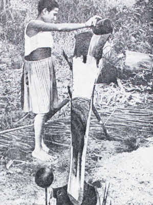 На островах Тробриан во время похоронных обрядов, совершаемых по древним обычаям, все члены общины, за исключением тех, кто принадлежит к роду умершего, стригут свои пышные шевелюры и покрывают тело слоем жира, смешанного с древесным углем. Согласно обычаю, соседи из других деревень приходят к ложу покойника, чтобы пробыть с ним некоторое время. Обычно после таких посещений несколько местных девушек остаются с соседями, чтобы утешить их. Во время любовных свиданий девушки вольны причинять своим партнерам боль: они могут бить, хлестать, царапать и даже поранить их. Больше того, женщины стремятся изуродовать таким путем как можно больше мужчин. В свою очередь, многочисленные царапины и раны — предмет гордости мужчин, признак их удач и высоких мужских качеств; они позволяют им надеяться на награду от своих мучительниц. Мужчина избегает подобных «ласк» лишь тогда, когда девушка ему не нравится. Миссионеры восстают, конечно, против подобной практики, однако в деревнях, расположенных вдалеке от миссий, мы часто наблюдали наглядные доказательства подобных «шалостей» на теле молодых мужчин. Красота женщины на островах Тробриан оценивается главным образом по овалу лица и глазам. Лицо должно быть полным и круглым, а глаза — небольшими. Аборигены считают их местом, через которое в «человека проникает влечение». Откусывание ресниц (действие называемое митакуку) играет также важную роль в любовных ласках. Особое значение придается груди — нуну, ее форме и величине. Как и у нас, женщина должна быть стройной, живот ее — небольшим. Этот последний признак красоты касается одинаково как женщин, так и мужчин. Местные представительницы прекрасного пола поддаются также обаянию приятного мужского голоса. Хороший певец может здесь рассчитывать на такой же успех у женщин, как и у нас. Меня поразило то, с какой готовностью и сноровкой отцы во всех деревнях ухаживают за маленькими детьми. Женатый островитянин умеет приласкать и накормить (какой-нибудь кашицей) малыша и даже тщательно вымыть его, если ребенок испачкается. Удивительно, что все это происходит в условиях, когда мужчины привыкли стыдиться выполнять функции, считающиеся исключительно женскими. Выражение «ты — повар» звучит здесь оскорбительно. Поэтому местный островитянин никогда не приложит руку к приготовлению пищи (разве что во время плавания в море на лодках). И нет ни малейшей надежды, чтобы даже в отдаленном будущем что-либо изменилось в этом отношении. Достойна похвалы также чистоплотность жителей Киривины. Они чрезвычайно чувствительны к грязи и неприятным запахам. Местные деревни всегда чисто подметены, нигде не валяются пищевые отбросы, люди очень часто купаются (купание именуется здесь какайа). В то же время все звуки, издаваемые при еде, не считаются зазорными. Я также никогда не видел ни у одного из мужчин грязной набедренной повязки из листьев пальмы арека или несвежей юбочки у женщин. Изготовление таких юбочек — дело отнюдь не простое. Их делают из листьев бананового дерева и пандануса, которые разрезают на узкие полоски и отбеливают на огне, а затем раскрашивают с помощью растительных красителей в два основных цвета: темно-фиолетовый и ярко-красный. Каждая из местных женщин имеет около пятнадцати таких более или менее нарядных юбочек, которые надевают в зависимост