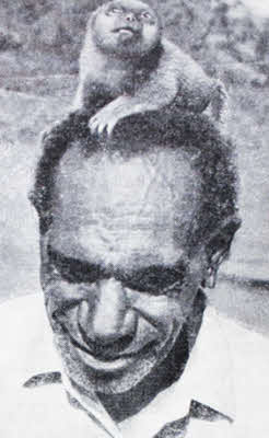 Обращаться за разъяснениями к Гэсу было бесполезно— он безмятежно спал. Оставалось лишь последовать его примеру. И удивительно, в ту ночь я спал прекрасно, без всяких сновидений. Утром мы насчитали в «мужском доме» около тридцати черепов, причем все они были препарированы по-разному. К ним приделали бороды и волосы, носы самой диковинной формы и разрисовали всевозможными узорами. Все это, в сочетании с декоративным оформлением «интерьера», производило несколько странное впечатление. Однако мы начали уже привыкать к присутствию черепов в жилых помещениях. — Что же вы хотите, — объяснял Гэс, — ведь мы храним снимки своих родственников в семейных альбомах, а местные жители коллекционируют черепа выдающихся родственников. Это, безусловно, более долговечные памятники. — Ты прав, разница невелика. — Пойдемте-ка лучше смотреть деревню. Деревня мало чем отличалась от тех, которые мы посетили раньше. Несколько иначе разукрашены весла и каноэ, другие росписи и циновки, служащие стенами хижин, но все та же детвора, те же замужние женщины, испокон веков выполняющие здесь роль рабочей силы. Мужчины же либо предаются блаженной лени, либо обсуждают «чрезвычайно важные» вопросы. В перерывах между этими занятиями они отправляются в путь на своих каноэ, чтобы подыскать древесину, пригодную для постройки лодок или для резьбы. Иногда мужчины отправляются на охоту. Разгуливая по деревне, мы встретили мужчину со странным «головным убором». В кудрявых волосах канака торчал зверек величиною с кошку. Темно-серый мех, большие глаза, свернутый в трубку безволосый хвост — всё это выдавало в нем кускуса. Абориген гордо носил своего любимца, время от времени поглаживал его. Он, видно, был очень привязан к зверьку. Мы засняли хозяина с его кускусом со всех сторон, а потом решили поговорить с ним. Стах спросил: — Какая польза от этого ручного кускуса? Гэс перевел. Островитянин посмотрел на нас, как на идиотов. — Каи каи, — кратко ответил он. При этом у островитянина было такое выражение лица, какое могло бы появиться у электротехника, если бы его спросили, какая польза от электролампочки. И для пущей убедительности канак повторил: — Кускус, — при этом он многозначительно погладил себя по животу. Неизменно сопровождающая нас стайка детворы дружно подтвердила его мнение. — Он прав, — рассмеялся в свою очередь Гэс, — жаркое из кускуса очень вкусно. Думаю, что европейским обществам защиты животных не найти здесь себе сторонников.