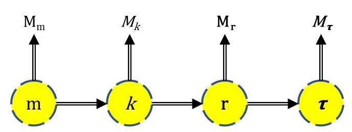 Mm — множество; Mk — множество комплексов; Mr — множество векторов; M𝛕 — множество тензоров. Рисунок 5. Система множеств первичных математических объектов.