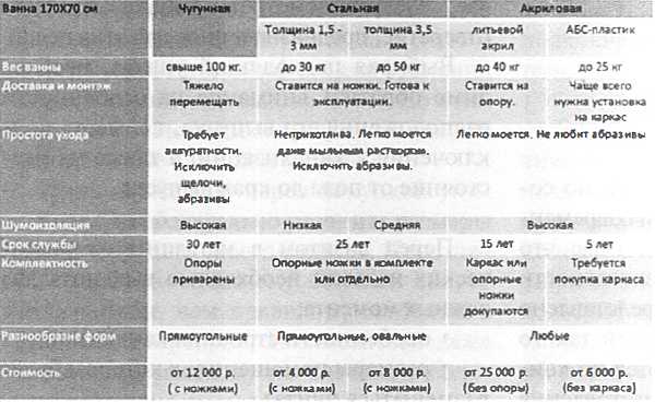 Сравнение ван из различных материалов: