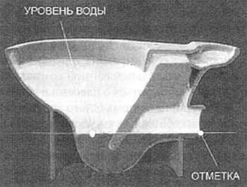 На схеме наглядно представлен процесс определения высоты зеркала воды в чаше унитаза. Это важный показатель, который помогает отличить модель с системой антивсплеск от других вариантов