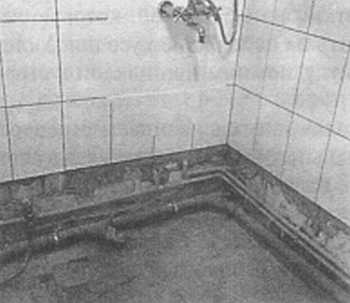 Перед началом строительства необходимо позаботиться о монтаже коммуникаций — подводке труб водопровода и канализации. Отдельный патрубок необходим для установки трапа — устройства для сбора использованной воды.