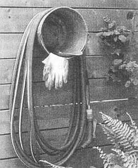 Это простое приспособление позволит навсегда избавиться от запутанных мотков шланга под ногами. Стоимость такого держателя варьируется от 800 до 5 тыс. рублей. Существуют самые разные виды и конструкции. Самыми популярными являются держатели на высокой ножке, а также те, что крепятся к стене. Если не хочется тратить деньги и силы на поиск готового решения, держатель можно сделать самостоятельно. Для этого достаточно прикрепить старое прохудившееся ведро дном к стенке или столбу.