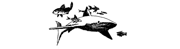 Чтобы найти добычу, зарывшуюся на мелководье в песок и часто невидимую глазу даже при относительно хорошем освещении, акулы использовали сверхчувствительные датчики — маленькие пятнышки под нижней челюстью. Эти рецепторы воспринимали даже самые слабые электрические разряды, испускаемые морскими языками и прочими придонными жителями, а также любые изменения давления и температуры. Обладая, кроме того, отличным зрением и высоко развитым обонянием, акулы чувствовали себя как дома и в полной тьме, и при дневном свете и всюду были одинаково опасны. Умевшие успешно приспосабливаться в любом уголке своей морской вселенной, они, в отличие от более сложных костистых рыб, имели ряд особенностей: значительную массу, удельный вес меньше веса воды, жирную печень, а не плавательный пузырь, которая обеспечивала их жизненной энергией и способностью держаться на воде, зубы, способные к бесконечной регенерации. У некоторых акул были также особые челюсти, которые при атаке выдвигались вперед, и хищницы вырывали огромные куски плоти точно лапой с острыми когтями. Глаза у акул закрывались пленкой, похожей на веки, но она не опускалась, а поднималась, в отличие от млекопитающих и рептилий.