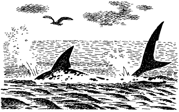 Могучие хвосты и обтекаемые тела акул, крутившихся вокруг судна, наглядно демонстрировали, каким образом они способны развивать такую огромную скорость даже на большой глубине; вряд ли они со своими хищными пастями были желанными гостями возле катера, но все равно пора было возвращаться. Судно на большой скорости двинулось к невидимому пока побережью, и рыболовы, до крайности возбужденные, старавшиеся перекричать друг друга и рев моторов, без конца вспоминали различные захватывающие моменты сегодняшней ловли.