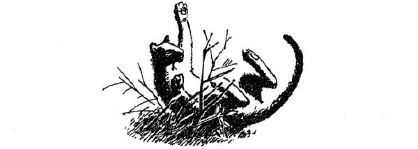 Однажды он поймал взрослого зайца и весьма удачно избежал удара его когтистой задней лапы, промелькнувшей на волосок от его глаза; зайцу он тут же перекусил шейные позвонки. Такое получилось у него впервые, и после удачной охоты он позволил себе вдоволь попрыгать и покувыркаться, помурлыкать и помяукать. Но заяц оказался слишком тяжел, и в воздух его подбросить не удалось, хотя Пятница попытался сделать это и сам неуклюже повис головой вниз, перекувырнулся, смущенный таким оборотом дела, и еще три раза проделал тот же самый трюк, притворяясь, что именно этого и хотел с самого начала. Это был небольшой капский заяц, примерно в два раза легче Пятницы, с красновато-рыжей шерстью, хотя ни шерсть, ни мягкий пух на брюхе Пятницу не интересовали, и он легко ободрал с зайца шкуру когтями.