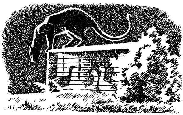 В ночные часы, когда он находился в пути, его соперниками, как и всегда, становились серые мангусты и шакалы. Изгороди, защищавшие шоссе от шакалов, встречались здесь везде, как и на протяжении уже пройденной Пятницей тысячи километров; изгороди карабкались по немыслимым каменистым кручам и отвесным утесам, но для Пятницы препятствием не служили, и если проволочная сетка оказывалась специально загнута и вкопана в землю, то он легко перелезал через изгородь по деревянным столбикам, служившим опорами.