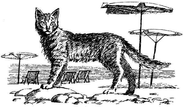 Продвигаясь среди здешних низкорослых кустарников — человеку они были по колено, но коту все же казались настоящим лесом из спутанных черных стволов и ветвей, — он крался, как маленький леопард, и местным мелким крысам казался, должно быть, чуть ли не великаном.