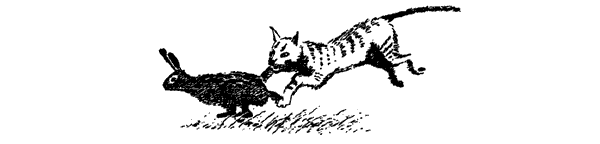Его самоуверенность и беспечность после поимки второго зайца, что произошло тремя днями позже, чуть было не стоили ему глаза; это случилось среди пшеничных полей к востоку от Матрусберге. Этого длинноухого зверька он схватил, как и предыдущих, за горло, однако это оказался совсем другой заяц и весил он столько же, сколько и сам Пятница. Кот вцепился в его мягкую шерсть и совершенно неожиданно оказался на скачущем зайце верхом, но тут же получил удар сбоку по голове и полетел на землю, оглушенный и совершенно потерявший ориентацию.