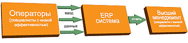 Данные в систему вводят операторы (то есть специалисты с низкой эффективностью труда), а информацию о состоянии дел в компании получают руководители среднего и высшего звена (специалисты с высокой эффективностью труда). По сути, единственное, что должен знать директор компании об устройстве ERP (да и вообще практически любой ИТ-системы): мусор на входе приводит к мусору на выходе. Чтобы получать правильные и актуальные отчеты, сначала нужно организовать своевременный и безошибочный ввод данных в систему.