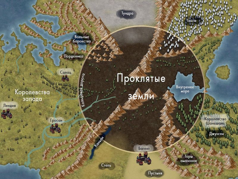 — Ладно! Рассказывай про мир, — проворчал я, когда мы вышли за полуразвалившуюся городскую стену и углубились в редкий светлый лес. — Мы сейчас в опасных землях, — начала девушка. — Кто-то называет их Проклятыми, кто-то еще как. Это круг диаметром двести миль. Одна миля — это тысяча двойных шагов, примерно полтора ваших километра. Ограничены они Кольцевой дорогой, замощенной плитами из белого камня. В этих землях живет нежить, но за дорогу она выходит редко, потому что там какой-то магический барьер. Здесь растет много особых растений и водятся редкие животные. Есть и древние города, где можно найти очень ценные вещи. Вот и ходят сюда сборщики всякого и копатели. По краю еще ничего, но и ценного здесь меньше. А вот чем ближе к центру, тем опаснее. Многие рано или поздно пополняют местную нежить. Собственно и всё. Девушка пожала плечами, вроде как просветив меня. Ну что это за рассказ? Так что я первым делом спросил: — Откуда взялись эти земли, и кто огородил их дорогой? — Тебе и вправду это интересно? — удивилась Селена. — Но я так-то не много знаю. В общем так… Здесь пару тысяч лет назад жили великие маги. И они что-то напортачили. Появились опасные земли. Из них пёрла нежить, и окрестным жителям приходилось несладко. Но тысячу лет назад сюда пришли эфили, такой народ с другого континента. Очень правильные все из себя. Они вылечили эти земли, и начали с окружной дороги. Шестьсот с лишним миль мощеной и магически защищенной дороги. Они очень сильны. — Были? — уточнил я, вспомнив давно покинутый жителями город. — Да может и есть… — пожала плечами девушка. — Но на своем континенте. Их отсюда вытурили лет пятьсот назад. Церковь Пресветлого. Эти эфили не совсем люди и им на святош было начхать. Те и подняли против них многих соседей. Вот эфили и сказали, что мы к вам всей душой, спасли от нежити, а вы к нам задницей… Ну и живите дальше сами как хотите. Уплыли, короче. — А нежить расплодилась снова? — усмехнулся я. — Ага. Но дорога её более-менее сдерживает. Здесь по краям днем почти безопасно, а вот ночью… Разве что на деревьях ночевать. Ну или идти сильным отрядом. С магами. Через дорогу нежить переходит нечасто, но бывает. И… бывало куски дороги разбирали на стройматериалы. Но потом возвращали, потому что там начинался ад.