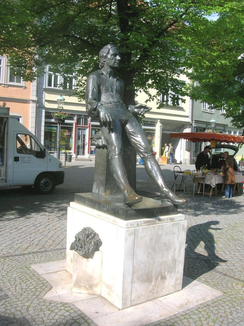 О великом композиторе и органисте в городе напоминает интересный, по-своему уникальный памятник, запечатлевший его отдыхающим за органом в момент музыкальной паузы. Иоганн Себастьян предстает перед нами без официального сюртука и традиционного парика — таким юным, каким он прибыл в Арштадт в 1703 году.