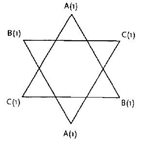 В своём первом письме Паули собрал вместе архетипические фигуры, имевшие для него значение в прошлом и настоящем. Он намеревался показать, как с годами изменились его отношения с этими архетипами. Эта группа включала в себя родительские архетипы, аниму и самость. Письмо начиналось с загадочной надписи: «Знаку 6», за которым следовало выражение «2×6 = 3×4». К этому была добавлена подпись: «Профессор, который будет думать численно»[315]. Эти таинственные фразы возвращают нас к «беседе» Паули с Учительницей Фортепьяно, в которой он предложил, чтобы Учительница перевела свои мелодии на язык чисел, а он мог бы вычислить (интерпретировать) их значение. С этой точки зрения письмо даёт понятие о его связи с анимой, но на менее сознательном уровне. Считая, что эти числа всплыли из бессознательного (анимы), Паули столкнулся с задачей определения их смысла. Как Паули сообщил в письмах, он решил эту задачу, сначала умножив 2 на 6, что дало 12, а это, в свою очередь, привело к 3×4. Эта последняя пара чисел вызвала важный инсайт, связанный с раскрывающим своё значение сном. Весь процесс повлёк за собой ряд мыслей, которые «иррационально» выросли из бессознательного. Сначала Паули занялся шестью доминирующими архетипами, которые были активны в течение двух периодов его жизни. Первый — «юность» — завершился в 1928 году, с переездом в Цюрих. Второй, «недавняя жизнь», продолжался с 1946 года (конца войны) по настоящее время. В промежуточный период (1928-1946) маятник эмоциональных ценностей качался от одной крайности к другой. Эти промежуточные годы были сложным временем, периодом «малой трансформации»; в них вошли «его жизненный кризис» (развод, эмоциональный кризис и исцеляющий опыт бессознательного) и годы войны, проведённые в Америке. Паули нарисовал две звезды Давида, одна относилась к раннему этапу жизни, другая к недавнему. Шестилучевая звезда символизировала почву, основу всех арехтипов. К каждой звезде Паули приписал три пары архетипов.