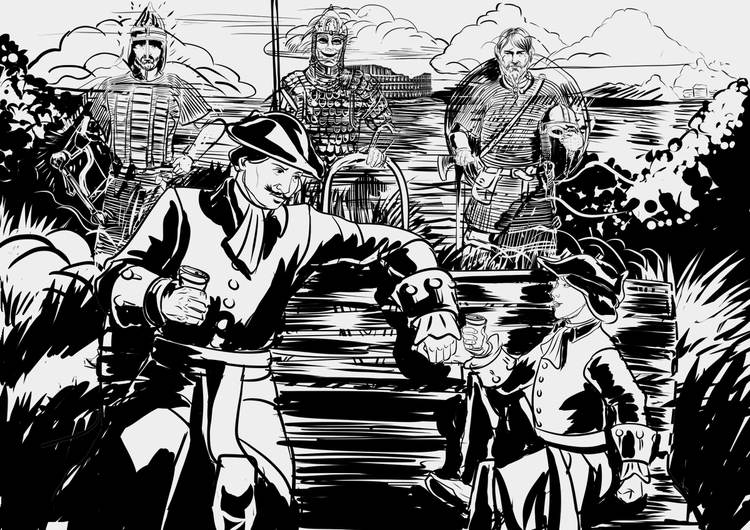 Петр Алексеевич стоял у борта полугалеры «Принципіумъ» и наблюдал за тем, как на суше разворачивается масштабное действие. Татары пытались атаковать с лагерь русских войск, осаждавших Азов. Не взять. Нет. Решительный натиск они не только не вели, но и не практиковали в силу специфической тактики ведения боевых действий. И если войско шло на марше — может быть. Да и то — под вопросом. Но даже полевые укрепления были для них — проблемой с которой они предпочитали не связываться. Строго говоря все, что татары могли в текущей ситуации сделать — это беспокоить войско, пытаться нарушить его снабжение и не давать предпринять штурм, нависая над тылом. Поэтому требовалось их отбросить. Чем поместная конница и занялась, выйдя из лагеря… Петр не знал какими были помещики в прошлом. И особенно не стремился. Ему это было ни к чему. Он жил настоящим. А в настоящем дворянское ополчение представляло собой по сути легких драгун. У всех мушкеты с кремневым замком и сабелька, которой, впрочем, они пользоваться толком не умели в основном и носили для статуса. У кое-кого имелись пистолеты. Но так или иначе — их основным оружием был «карамультук» с которого они умели даже с седла стрелять и там же перезаряжаться. По случаю спешиваясь и давая более организованный огневой отпор. Не только умели и ценили такое, но и предпочитали огненный бой всем остальным. Из-за чего, к слову, идеи с русскими драгунами во времена Михаила Федоровича и Алексея Михайловича так и не пошли. Зачем? Если с начала XVII века в этой роли вполне выступало поместное ополчение, почти полностью отказавшееся к середине века от лука со стрелами. Доспехов никто, кроме отдельных состоятельных личностей не носил. Вроде сотников или того выше. Да и те их надевали больше для статуса. Татары тоже были преимущественно в тряпье, хотя и другом, но вместо огнестрельного оружия предпочитали саадак — лук со стрелами. Что сразу бросалось в глаза. В сочетании с сильным влиянием польской и мадьярской культуры на платье поместных дворян это давало хорошо узнаваемый силуэт воина. И, как следствие, позволяло весьма точно с большой дистанции понимать кто где. Это в XVI веке русская поместная конница была едва ли отличимая от татарской. Как обликом своим, так и тактикой. А вот потом, на рубеже XVI–XVII она снова свернула «на запад» и пути-дорожки военных традиций потихоньку разошлись. Впрочем, Петр этого не знал и с борта полугалеры наблюдал за достаточно масштабным, но весьма деликатным сражением без всяких «задних мыслей» и «исторических рефлексий». Ни татары, ни поместные не рвались сходиться в свалку. Так — наезжали. Постреливали. Отходили. Этакие танцы конных групп. Только у поместных они выходили более продуктивными. Все-таки аргументация мушкетом более весома, чем стрелой. Как там пелось в песне? Против самых лучших стрел все решает огнестрел? Вот так и происходило. Из-за чего татарское войско сначала откатилось назад, а потом и совсем отошло. Впрочем, было видно — они не сильно-то и старались. Скорее изображая попытку растревожить лагерь и вынудить его отойти, чем на самом деле к этому стремясь. И это не удивительно. Османы их использовали явно не по их профилю. Сильной стороны татарской конницы являлось умение ограбить и разорить территорию максимально быстро и предельно основательно. Уклоняясь от серьезн