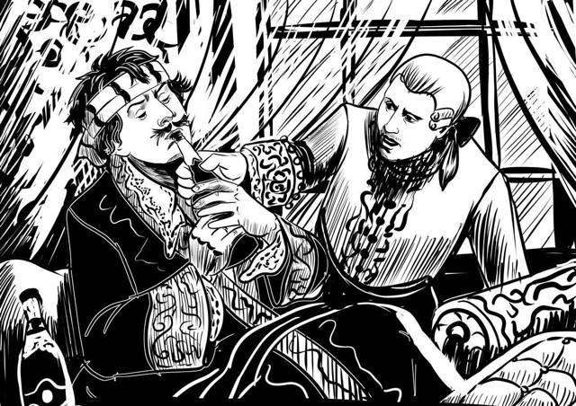 Переезд царевича Алексея к своей тетке не остался не замеченным широкой публикой Москвы. Да, Лопухины старательно выдавали это обычный гостевой визит. Но сие мало кого убеждало. Слишком странным это оказалось. Люди довольно скоро пришли к выводу, что произошло какое-то неизвестное им событие, если Евдокия, на дух не переносящая Наталью, от правила своего единственного сына к ней погостить. В иной ситуации — и леший бы с ним. Всякое бывает. Но царица же как квочка опекала ребенка и боялась того, что он лишний шаг ступит без ее контроля. Парень же осваивался. Тетушка выделила ему вполне подходящие покои. Да и Вяземского с кормилицей Ариной не обделила. Более того — уже на следующий день патриарх лично привел учителей. Всех необходимых. Да еще и на выбор, чтобы царевич мог носом поводить. Играть в игры он был готов до определенного предела и глупо подставляться не видел смысла. Тем более, что все указывало на то, что это именно он присоветовал царице сдерживание обучения Алексея. И ему требовалось как можно скорее от этого открестится, выйдя из подозрения. Ну и, само собой, в случае вопросов со стороны царя, все отрицать. Это подставит царицу под удар. Ну и черт с ней. Все равно она не игрок теперь. Так что учеба царевича возобновилась и очень бурная. Впрочем, не учебой одной он занимался. Жизнь у тети в корне отличалась от того, как царевич коротал дни у матери. И, в первую очередь из-за того, что у Натальи Алексеевны имелся своего рода салон. Если выражаться в стилистике XIX века. Если же мерить все в формате XXI века, то у нее «на квартире» постоянно собирались разные компании и что-то обсуждали. Ясно дело — площади выходили куда более просторные, чем кухни советских панелек. И компании многочисленнее. А разговоры увлекательнее. Впрочем, политики не касались. Во всяком случае Алексей таких разговоров не замечал у тети. Это был не единственный «салон» Москвы тех лет. Подобные точек для собраться и поболтать хватало. На любой повод и вкус. Собственно, кулуарная жизнь столицы била ключом и отличалась изрядной насыщенностью. Конкретно у Натальи собирались люди, увлекающиеся искусством и культурой. Не самый лучший контингент для Алексея. Но другого не имелось. И требовалось работать с теми людьми, которые были под рукой. Так что, посещая такие встречи, он внимательно слушал. И мотал на ус. Виртуальный. Думая о том, как дополнительно заработать очков репутации. В конце концов какое влияние тетя оказывается на отца он знал отлично. И ее хорошее отношение было крайне важно. Этакая подстраховка. Слушал он. Слушал. А тут взял и решил показать себя. Выставил табурет с мягким верхом. Взобрался на него под удивленными взглядами гостей Натальи Алексеевны. И начал декламировать стихотворение. С максимальным выражением, на которое он был способен.