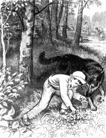 Собака быстро взяла след и направилась в лес, возвышавшийся над низиной. За ней шли Марат, Миша, вожатый и дядя Никандр с ружьём.