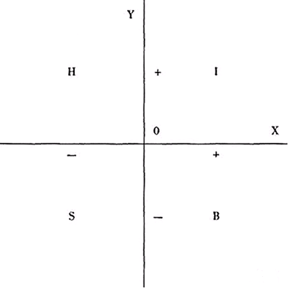 На этом этапе необходимо прояснить понятие человеческой глупости и определить dramatis persona[9]. Люди характеризуются разной степенью склонности к общению. Для некоторых любой контакт с другими является болезненной необходимостью. Они должны буквально терпеть других, а другие должны терпеть их. На другом конце спектра находятся те, кто абсолютно не может жить в одиночестве и даже готов проводить время в компании тех, кого презирает, вместо того чтобы оставаться в одиночестве. Между этими двумя крайностями существует большое разнообразие условий, хотя подавляющее большинство ближе к тем, кто терпеть не может одиночество, чем к тем, кто не имеет склонности к человеческим отношениям. Аристотель признал этот факт, когда писал, что "человек – животное социальное", и обоснованность его утверждения подтверждается тем фактом, что мы движемся в социальных группах, что семейных больше, чем холостяков, что так много богатства и времени тратится впустую на раздражающие и скучные коктейльные вечеринки, и что в конце концов мы можем быть уверены в том, что слову "одиночество" обычно приписывают негативную коннотацию. Независимо от того, является ли человек отшельником или светским львом, ему всё равно приходится общаться с другими, хотя и с разной интенсивностью. Время от времени отшельники тоже встречают других. Кроме того, человек всегда находится в отношениях с другими, даже избегая их. То, что я мог бы сделать для человека или группы, и чего я не делал, представляет собой "альтернативную стоимость" (т.е. упущенную выгоду или убыток) для этого конкретного человека или конкретной группы. Мораль басни заключается в том, что у каждого из нас есть какой-то текущий счёт с каждым из нас. От любого действия или бездействия каждый из нас получает прибыль или убыток, и в то же время определяет прибыль или убыток кому-то другому. Прибыли и убытки могут быть надлежащим образом проиллюстрированы графиком, а на рисунке 1 показан основной график, который можно использовать для этой цели.